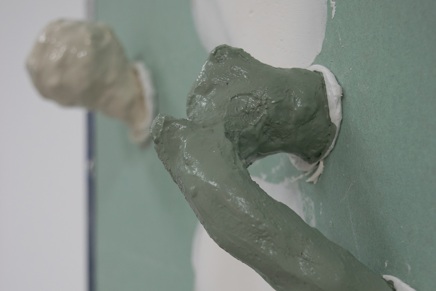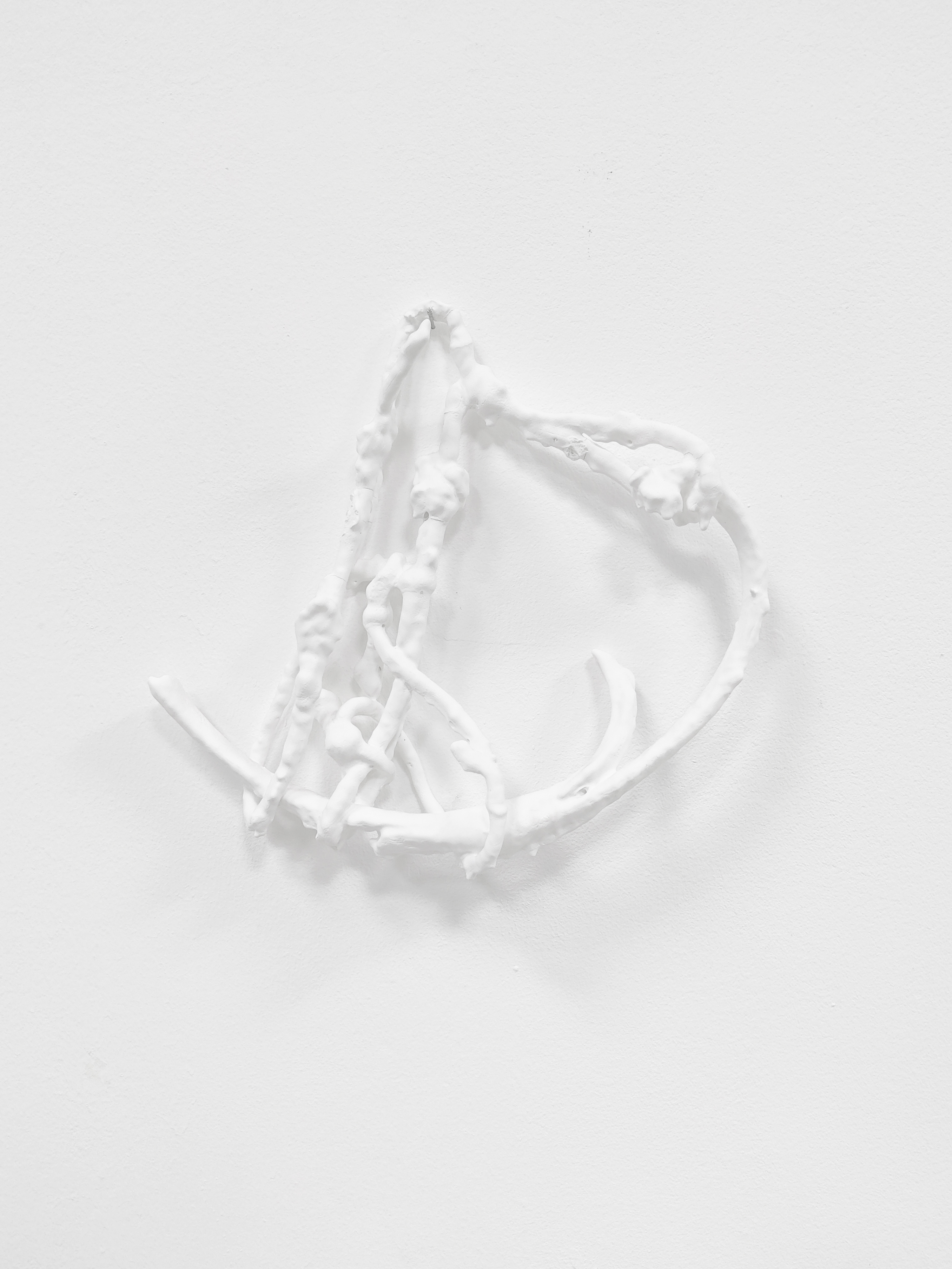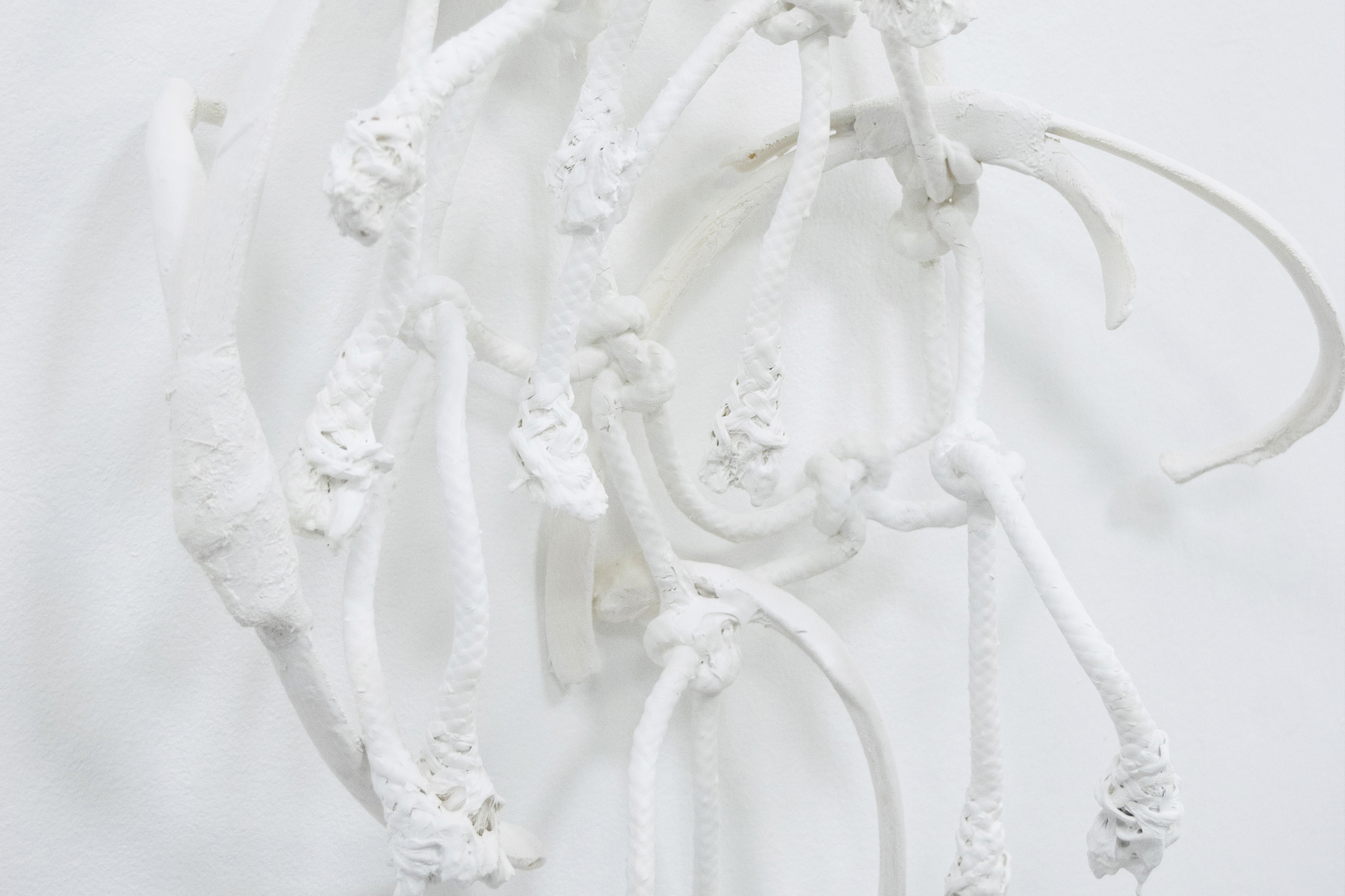 escayola, vendas, sal e impresiones 3D, con un acabado blanco prístino que mistifica el origen
