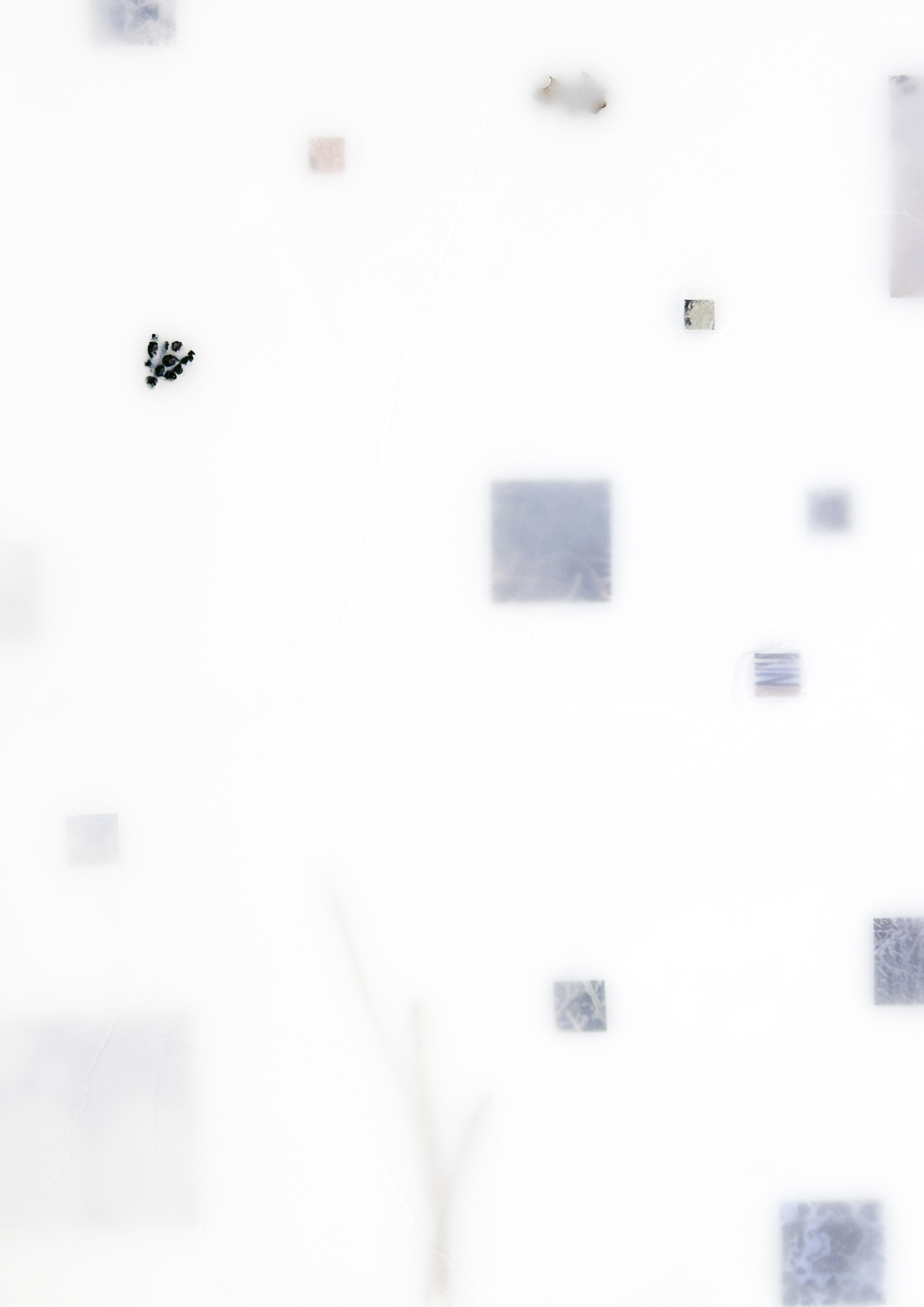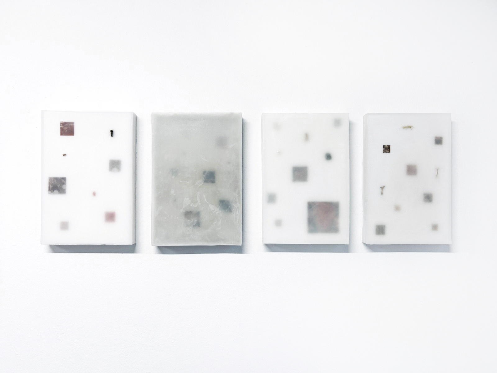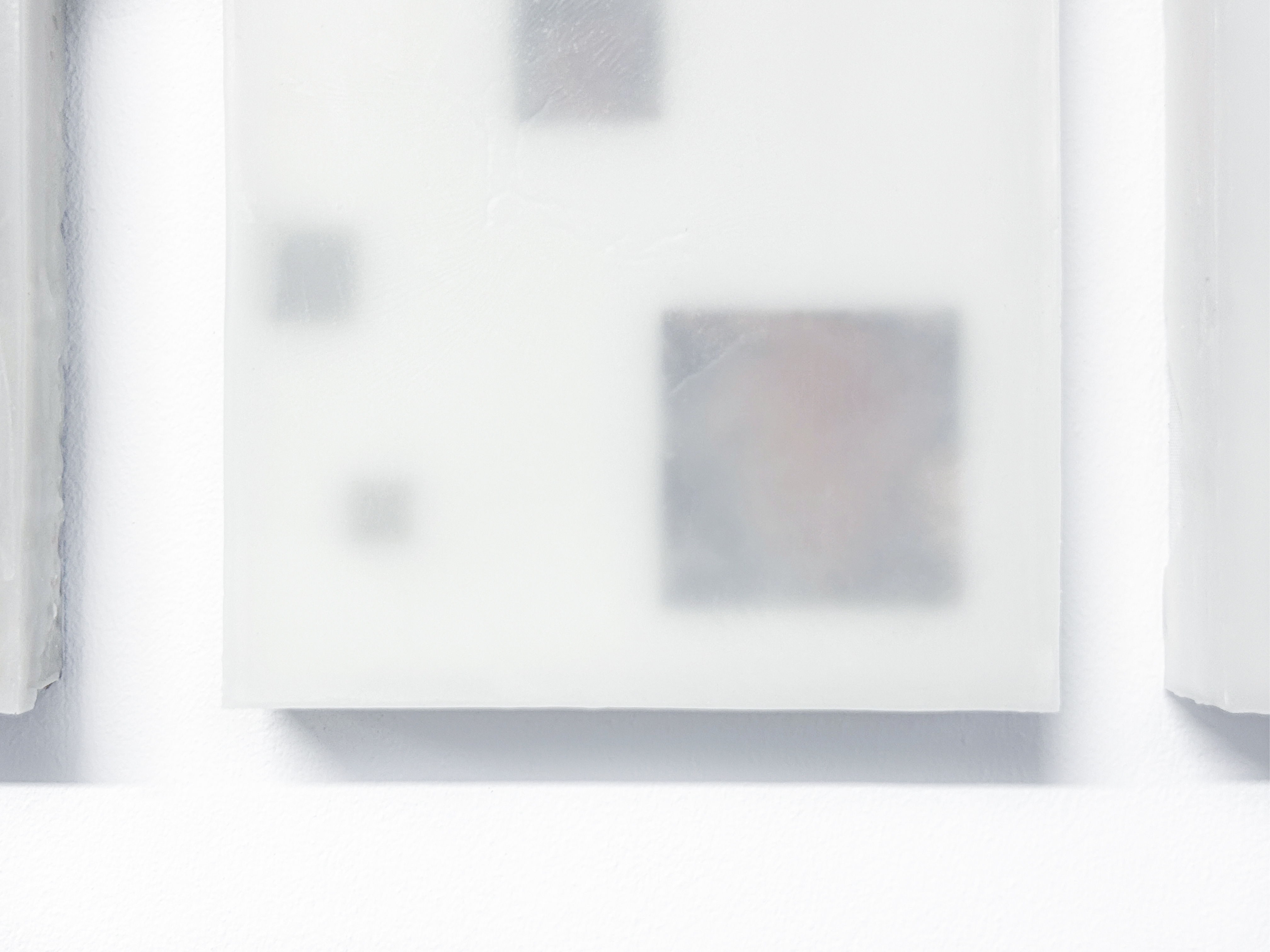 During his stay in Lanzarote, Minch builds a bank of surfaces: photographs of textures, traces, and imprints of the environment, alongside small organic and mineral elements collected on the island. These remnants are encapsulated in wax frames, creating pieces that oscillate between preservation and transformation. Wax acts as a membrane that veils and unveils, protecting while also yielding to the passage of time and climatic conditions.